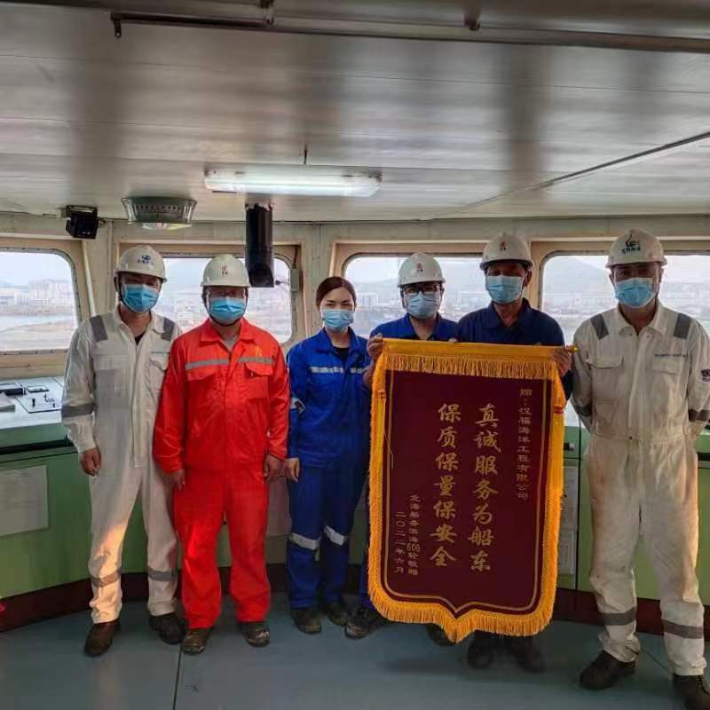 船长、轮机长代表“滨海608”轮诚挚地对汉福海洋工程顺利高标准地完成施工项目表示衷心感谢。船东的肯定是荣誉是温暖更是动力。汉福海洋工程全体员工将再接再厉,始终坚持“以行业工匠精神者为本,与合作者同心同得共赢“为宗旨,坚持“踏石留印,抓铁有痕”的工作作风、“聚焦客户需求,创新技术发展,持续为客户提供高性价比船舶修理解决方案”。